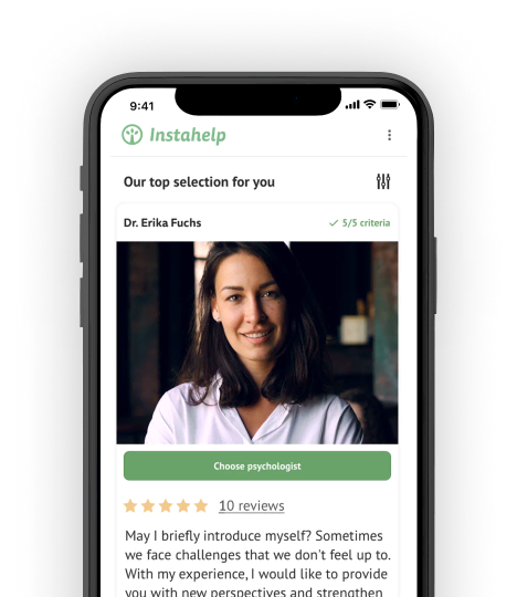 In psychological counselling, quality counts from the very beginning. Instahelp offers the largest network of top psychologists in Europe. Our smart matchmaking system accurately matches each user with the right contact person.